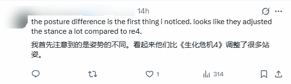 对比画面显示,随着角色年龄增长,新作中里昂的动作细节发生了明显变化。在持枪准备时,他不再像年轻时那样敏捷,而是增加了活动肩部的“间隙动作”,似乎是为了体现岁月带来的身体僵硬感。这种设计虽符合逻辑,但也让部分玩家觉得角色显得略微迟缓。
