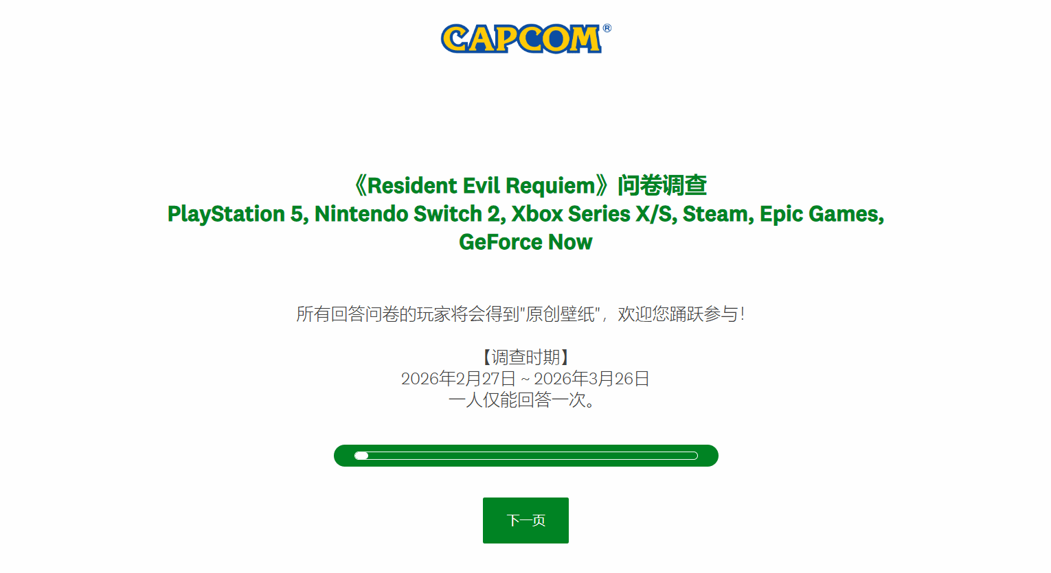 3月3日,卡普空面向全平台玩家推出《生化危机9:安魂曲》专属意见调研,希望收集玩家对游戏的真实评价,同时为参与问卷的玩家准备了专属数字礼品。