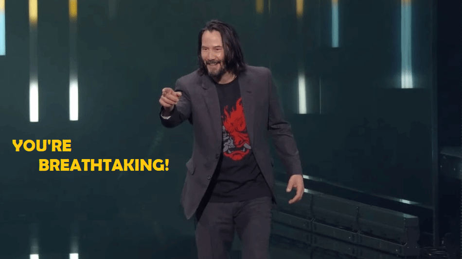 这一细节很快被玩家捕捉到,大家纷纷猜测,这款被暗示的游戏大概率就是《赛博朋克2077》——毕竟“V”正是该作主角的专属代号,而“wake up”“breathtaking”这两个表述,也都是玩家圈里广为流传的《赛博朋克2077》名梗,尤其是“breathtaking”,因基努·里维斯在相关活动中的演绎,早已成为这款游戏的标志性热词。