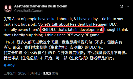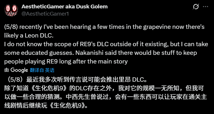 《生化危机9:安魂曲》刚发售不久,关于系列新动向的传闻就来了。知名爆料人Dusk Golem在X平台上透漏,本作的首个扩展包目前已进入开发的最后阶段,而且这次的主角很可能就是大家熟悉的里昂·S·肯尼迪。考虑到游戏本体刚刚上市,此时追加内容处于收尾期也符合常理。