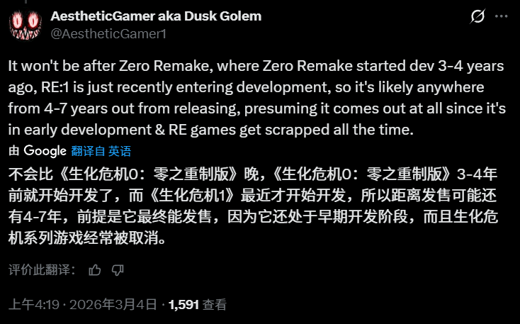 除了《生化9》的后续计划,Dusk Golem还梳理了未来几年的产品路线图。传闻已久的《生化危机:代号 维罗妮卡》重制版有望成为下一部作品,预计2027年推出;紧接着是定档2028年的《生化危机0》重制版。正统续作《生化危机10》可能会排在这两款重制版之后。至于《生化危机1》的重制工作,据说才刚刚起步。