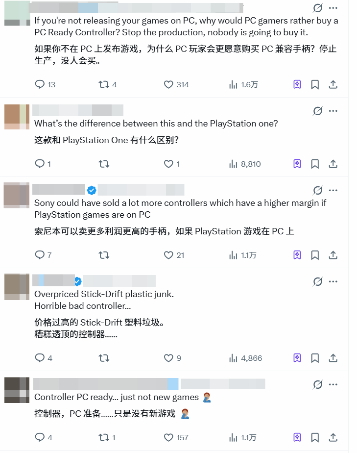 官方宣传语中的“PC Ready”(为PC准备就绪)更是成为玩家嘲讽的焦点,有网友调侃道:“手柄为PC准备好了……只是新游戏没准备好。”还有玩家直接追问索尼:“你到底支持不支持PC?赶紧拿个主意。”