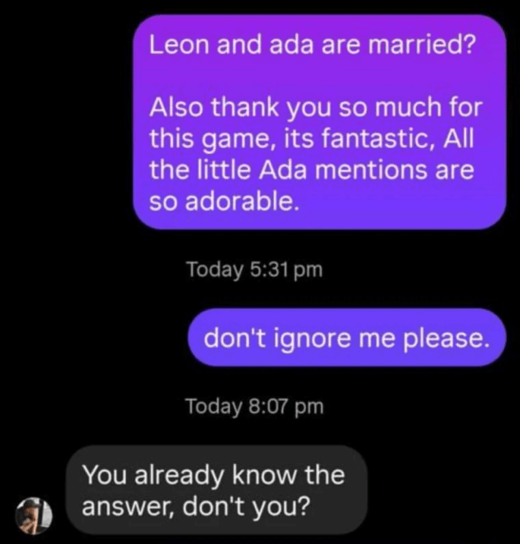 粉丝们并未满足于这份隐晦的暗示,紧接着又直接追问“里昂和艾达结婚了吗?”。令人意外的是,中西晃史没有用“无可奉告”这类官方话术敷衍,反而用“你懂我的意思”“你其实已经知道答案了,对不对?”这样的回应,进一步印证了玩家的猜测。