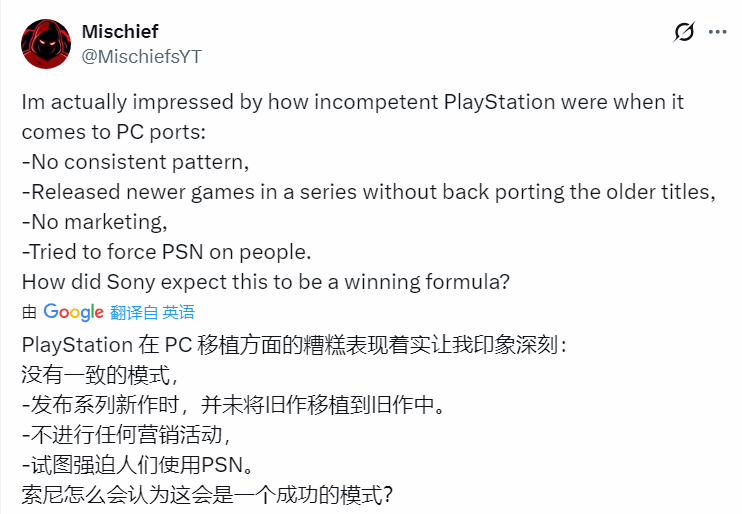 这一消息传开后,迅速在玩家社群中掀起讨论热潮,而多数玩家的态度并非意外,反倒认为这是索尼PC移植策略长期拉胯的必然结果——过去数年,索尼第一方作品在PC平台的表现始终未达预期,销量惨淡的背后,是玩家对其多方面问题的集中吐槽。
