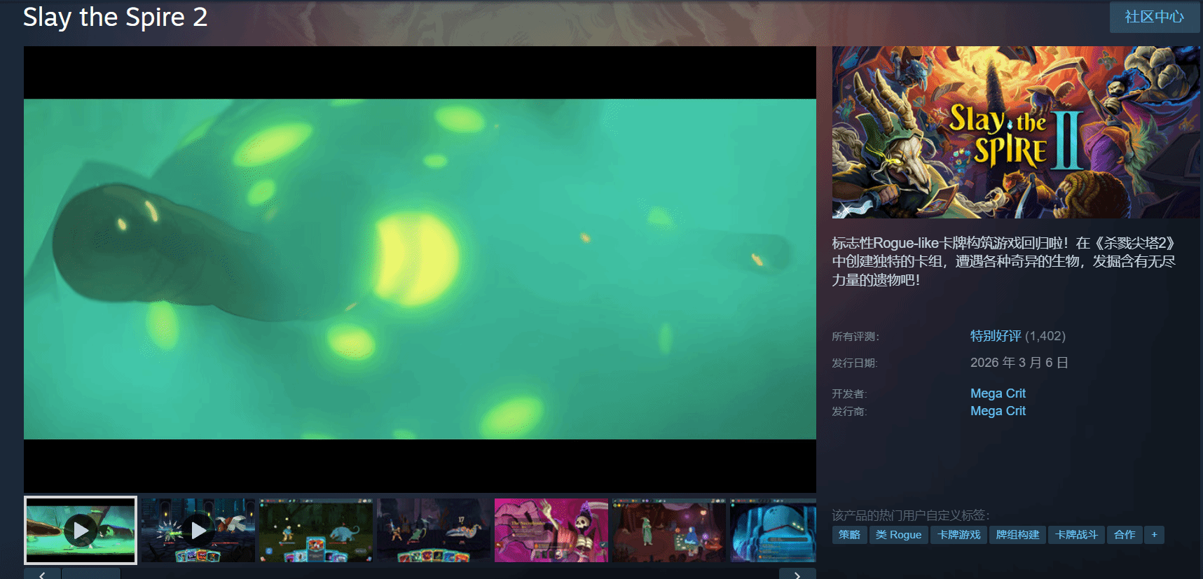 由Mega Crit Games开发并发行的Roguelike卡牌构筑经典续作《杀戮尖塔2》,正式登陆Steam平台。上线后热度持续攀升,截至本文发布,该游戏已在Steam斩获“特别好评”,成功延续了前作的传奇口碑。