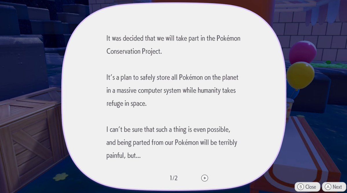 据Kotaku报道,结合玩家在游戏中收集到的零散文件可知,本作的故事发生在末日之后的关都地区,但这场末日并非人们想象中的战争、丧尸爆发或核灾难,而是由气候危机引发的生存危机。为了守护宝可梦的安危,人类曾启动“宝可梦保护计划(Pokémon Conservation Project)”,核心内容便是将全球所有宝可梦妥善储存在一个大型计算机存储系统中——与宝可梦正传游戏中的宝可梦电脑系统类似,而人类则暂时撤离至太空躲避危机。