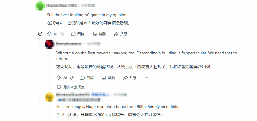 此次升级不仅解决了帧率瓶颈,更在分辨率上实现了巨大跨越。游戏画面从原本的900p直接跃升至4K标准,这种清晰度的提升让巴黎的建筑细节与光影效果显得格外震撼。许多资深粉丝一致认为,这依然是整个系列中美术风格与画面表现最为出色的一代,尤其是其标志性的跑酷系统,在高帧率加持下,从高处俯冲而下的视觉冲击力令人叹为观止,不少玩家呼吁后续作品能重新采纳这种设计思路。