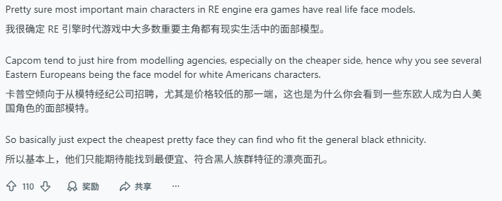 博主的观点得到了大量玩家的支持与赞同,不少玩家在讨论中举例,经典角色艾达王的脸模也并非中国模特,因此《生化危机5》重制版选用真实西非模特塑造谢娃,不仅能提升角色与故事背景的契合度,也能更好地传递西非文化特色,让角色形象更加立体鲜活。对于博主列出的这几位模特,玩家们也展开了热烈讨论,各抒己见。