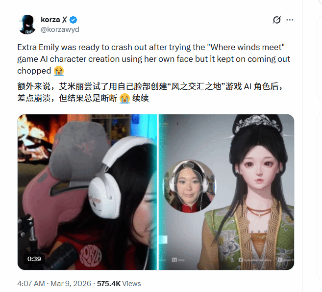 外网一位亚裔主播@Emliy近日游玩国产游戏《燕云十六声》时,因游戏捏脸功能引发了一场不小的争议。原本只是想通过照片上传功能,在游戏中还原自己的面容,可最终呈现的效果,却让她倍感失望。