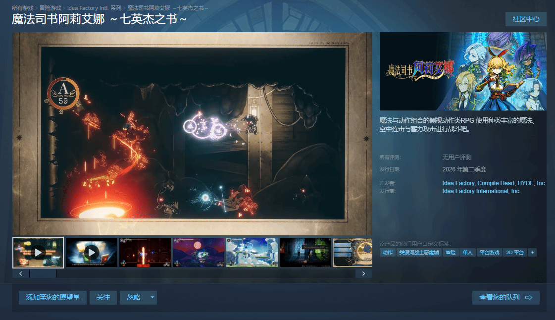 据外媒gematsu报道,地雷社正式官宣,旗下横版ARPG新作《魔法司书阿莉艾娜 七英杰之书》,确定于4月29日登陆Steam平台,届时PC玩家可正式体验这款主打美少女魔法乱斗的作品。