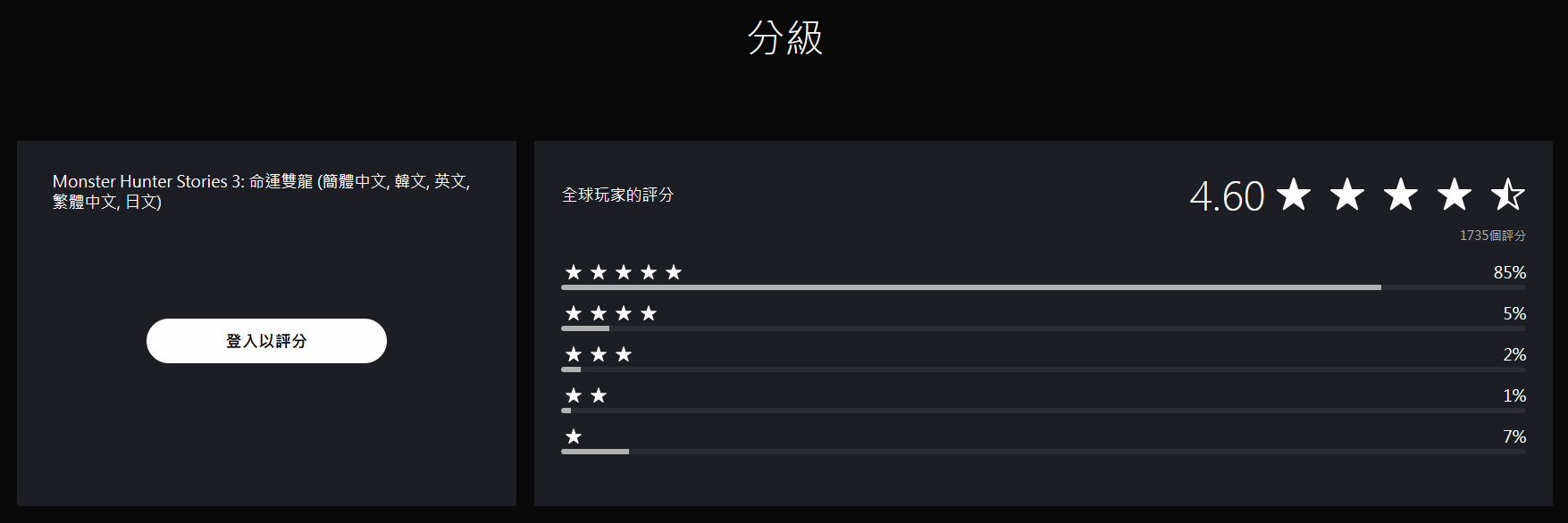 随着游戏在PS平台正式解锁,玩家们的首批评价也同步出炉,整体口碑表现亮眼。截至目前,该作在PS商店已累计收到1735条玩家评分,综合评分达4.6分(满分5分),其中约85%的玩家给出了5星满分好评,足以看出玩家对这款新作的认可。