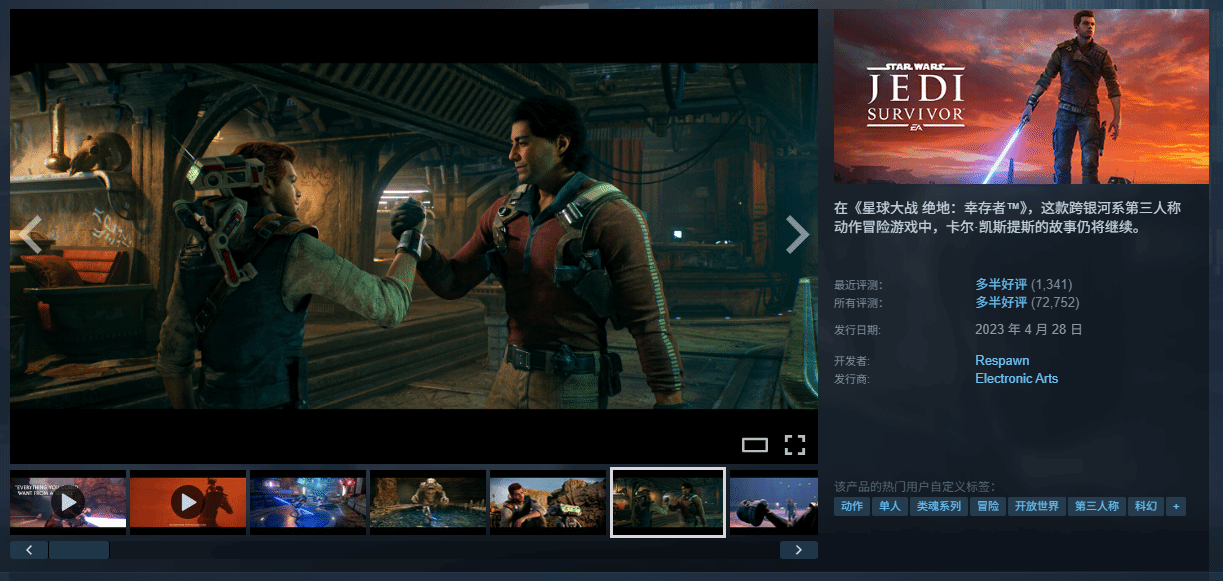 EA春季畅玩促销活动正在Steam平台火热进行中,多款热门游戏迎来大幅降价,其中《星球大战 绝地:幸存者》更是放出史上最低折扣,直接降价90%,现价仅29.8元,堪称“闭眼入”级别的福利,引发玩家广泛关注。