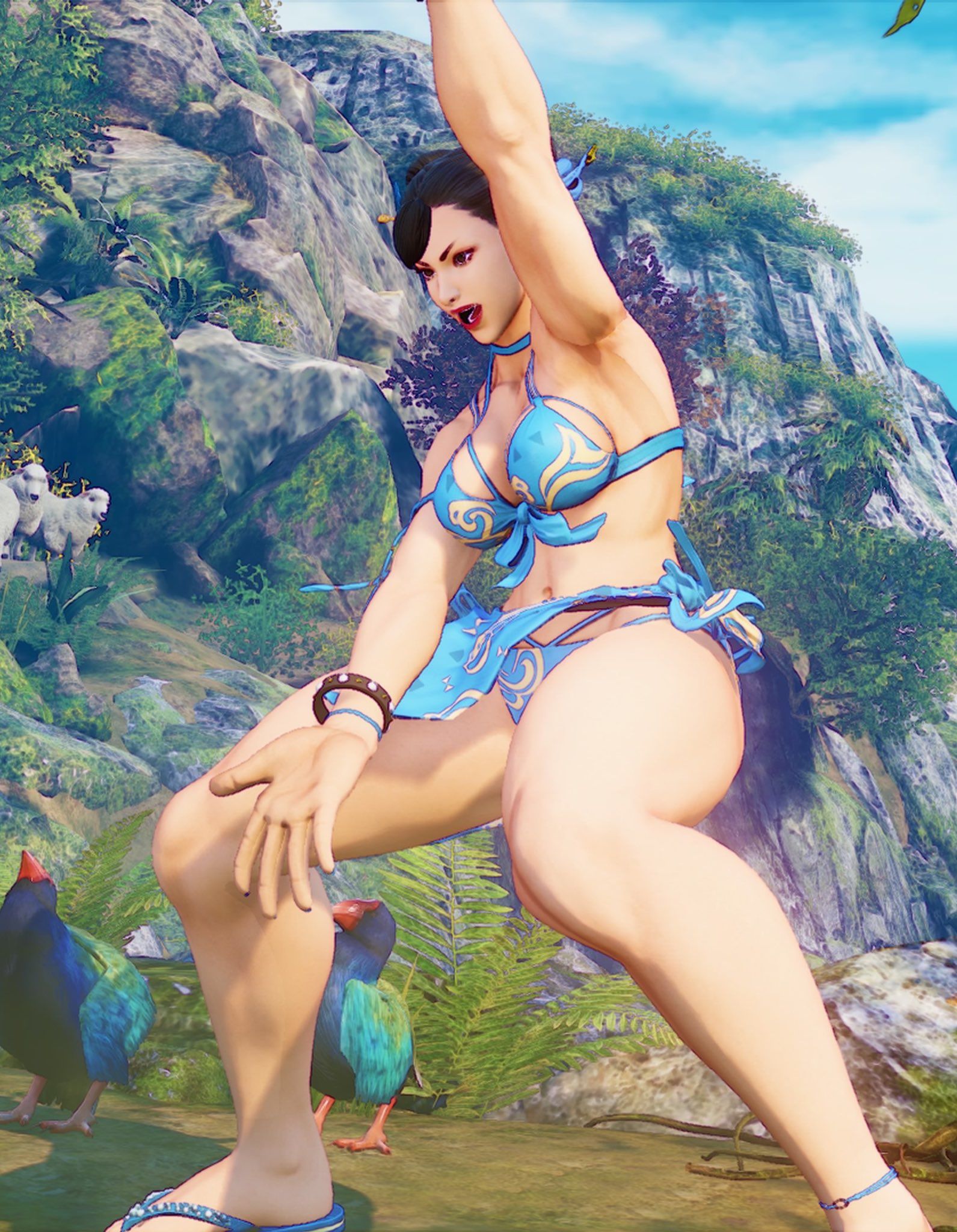 而到了《街霸6》,随着春丽从国际刑警岗位退休,转而在大都会市传授功夫,她的体型也发生了肉眼可见的显著变化。中川恭兵观察发现,春丽的下半身肌肉量较前作减少了约三分之一,背部肌肉也从以往“天鹅般的宽阔线条”,收缩成了“燕子般的紧致形态”。他对此评价道:“《街霸6》里的春丽,更贴合一位兼具魅力与优雅的田径运动员身形,少了几分凌厉,多了几分从容。”