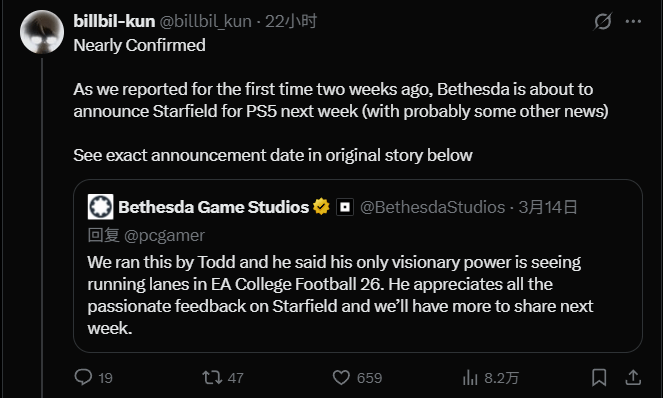 期待已久的《星空》PS5版终于有了确切动静,知名爆料人billbil-kun(坤哥)已明确确认,该版本将于下周正式开启预购,相关的发售日期、定价以及版本信息也同步曝光,让不少PlayStation玩家直呼惊喜。