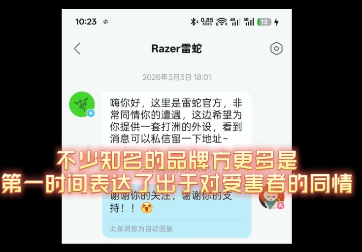 面对“起号圈米”的指责,“五月食伍”发布视频进行了详细澄清。他坦言,虽然雷蛇、西伯利亚、盖世小鸡等知名品牌方第一时间私信慰问并提供物资支持,但他本人并未开启任何商业推广接单。他强调,品牌方提供的多为给观众的福利,若未来真有合作收入,也计划在风波平息后全额捐赠,以回报公众的善意。、