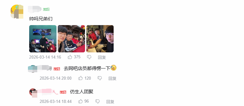 其中,模仿Faker的博主@小香赫,还在社交平台晒出了几人一起在网吧开黑的合影,趣味十足的画面引发网友调侃,有网友打趣道:“这阵容去网吧,店员都得愣几秒,还以为真的是选手本人来了”“堪称仿生人大型团聚现场”。也有不少网友表示,从特定角度看,这些模仿者的神似度确实很高,看得十分过瘾。
