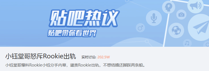 这位爆料的“小钰堂哥”表示,小钰在这段恋情中一直真心付出,满心都是和Rookie走进婚姻,但Rookie却并非如此,反而“只想玩”,甚至在两人恋情还未彻底结束时,就已经无缝衔接了新女友。这一爆料一经发出,迅速引爆舆论,相关话题#小钰堂哥怒斥Rookie出轨#的实时讨论量很快攀升至202.5万,引发全网热议。