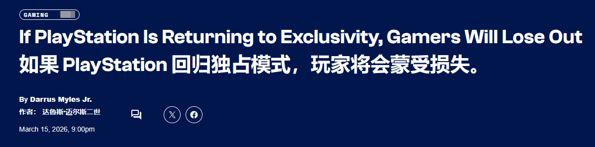 专栏作者Darrus Myles Jr.在文中,用一个极具代入感的场景点出了独占策略的弊端:当你被一款游戏的世界观、玩法所吸引,也渴望加入全网的热烈讨论时,却发现想要体验它,必须额外购买一台PlayStation主机——这种突如其来的门槛,会瞬间将玩家的兴奋感转化为挫败感。他直言,这种限制毫无必要,既显得随意,也完全不利于消费者,一款大型游戏一旦被锁定在单一平台,就意味着数百万玩家被直接拒之门外。
