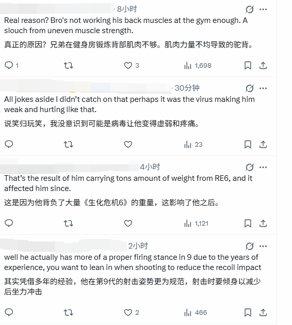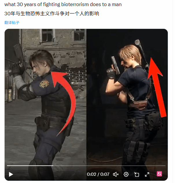 关于造成这一变化的原因,社区内众说纷纭。有观点认为这是角色健身计划中忽略了背部训练,导致无法承受重任;也有推测称是病毒侵蚀让里昂身体变得虚弱;此外,还有人从战术角度分析,认为这种姿态是为了适应更专业的射击动作而特意设计的。究竟哪种说法更接近真相,或许只有开发者心中有数,但这一细节无疑激发了玩家的广泛探讨。