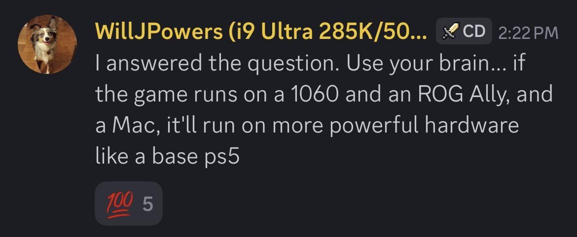 他的回应逻辑十分清晰且有说服力:目前《红色沙漠》已经成功完成了多类硬件设备的适配工作,其中就包括NVIDIA GTX 1060显卡、ROG Ally掌机以及Mac设备。在Will Powers看来,这些设备的硬件规格相对有限,既然游戏能在这些“弱势”设备上正常运行,硬件配置远优于它们的基础版PS5,自然也能轻松驾驭。