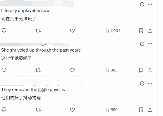 此前有相关视频及截图流出,不过有玩家指出,视频中出现的箭头仅为视觉干扰,并非实际效果展示。随着相关画面的传播,玩家间的讨论愈发热烈,其中也有不同声音——部分玩家表示,以角色格蕾丝的身材比例来看,即便没有物理抖动效果,也不会对整体体验造成明显影响。