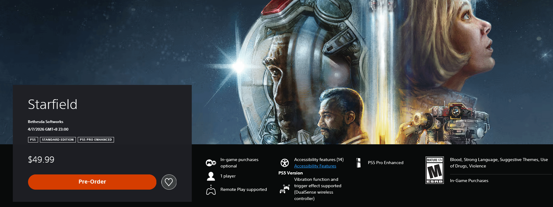 贝塞斯达(Bethesda)近日正式确认,《星空》将于4月7日登陆PS5平台。伴随主机版的发布,游戏还将同步上线“自由航道”免费更新以及“地球舰队”扩展内容。与此同时,官方宣布对这款游戏进行全球范围内的价格调整,售价由原先的70美元直降至50美元,涵盖Xbox、PS5及Steam等多个渠道。