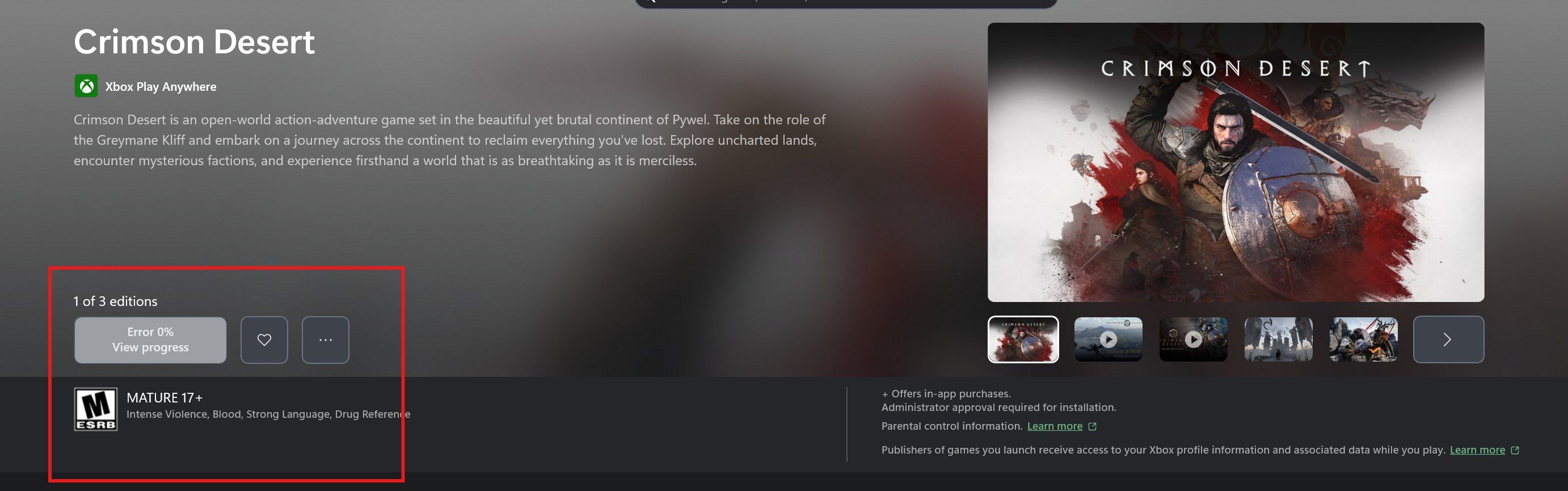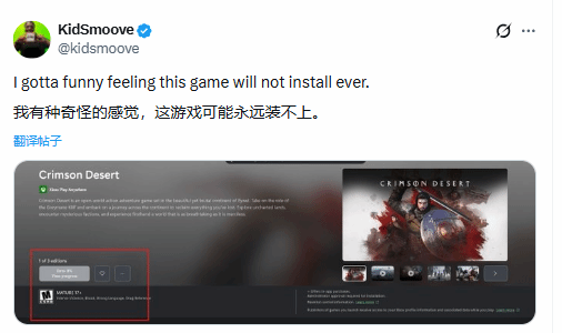 距离《红色沙漠》(Crimson Desert)全球正式解锁已不足48小时,官方如期开启了这款开放世界动作大作的全平台预载服务,本以为玩家能顺利完成下载、静待解锁,Xbox平台却意外出现严重问题。