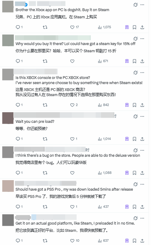 原本就对Xbox PC端应用体验颇有微词的玩家,纷纷在相关讨论中吐槽其长期存在的低效问题。其中有玩家直言吐槽:“你们难道不清楚Xbox PC商店的体验有多差吗?兄弟,赶紧去Steam买吧。”