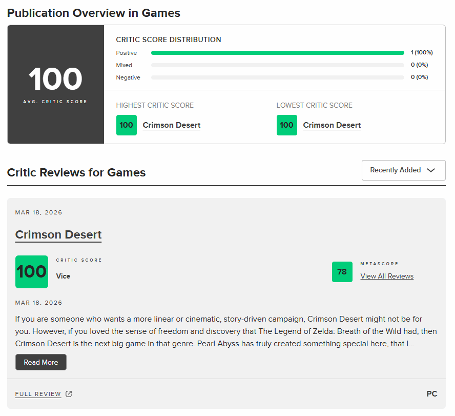 《红色沙漠》的媒体评分全面解禁,外媒VICE直接送出满分评价,这款未售先火的开放世界大作,用近百小时的实机体验,向所有玩家证明:它绝非虚吹的“画饼神作”,而是自《荒野大镖客:救赎2》以来,同品类中最能打的新标杆。