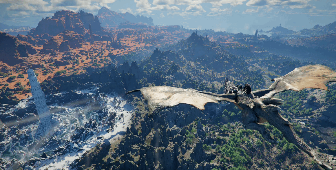 《红色沙漠》的地图规模,用“窒息”来形容毫不为过。当主角从云端纵身跃下,俯瞰整片派威尔大陆的瞬间,评测者当场脱口而出“wow”。据测算,这张地图的面积是《上古卷轴5:天际》的两倍,甚至超越了《荒野大镖客:救赎2》。雪原、绿洲、森林、沙漠等多样地貌完美融合,一整款游戏竟容纳了一整个大世界的风光,视觉冲击力拉满。