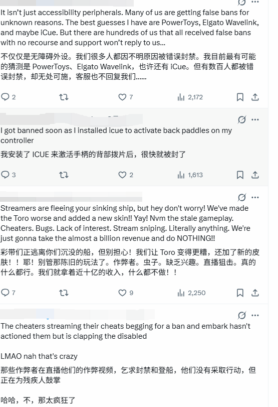 事件发酵后,Embark Studios迅速做出回应,堪称“光速滑跪”——官方第一时间撤销了对该残障玩家的永久封禁,同时公开向其表达歉意。在官方公告中,开发团队明确表示,目前支持团队正在全面审核所有相关申诉,若有其他玩家遭遇类似误封情况,可继续联系官方反馈,同时也对该玩家的提醒表示感谢。
