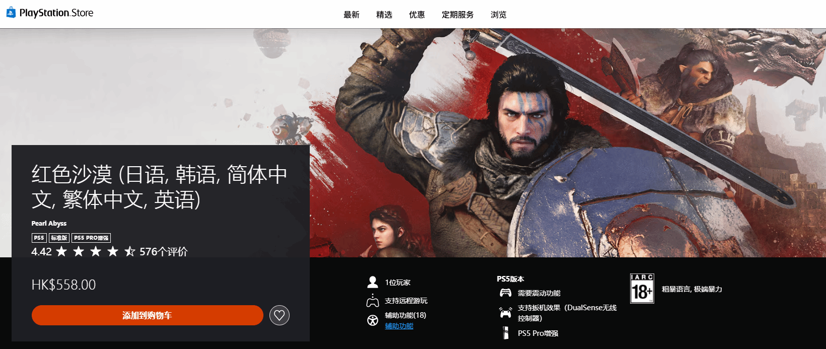 随着游戏正式上线,PS5版本《红色沙漠》的评分也同步揭晓,目前该版本的综合评分为4.42分,以5分为满分计算,整体表现亮眼。