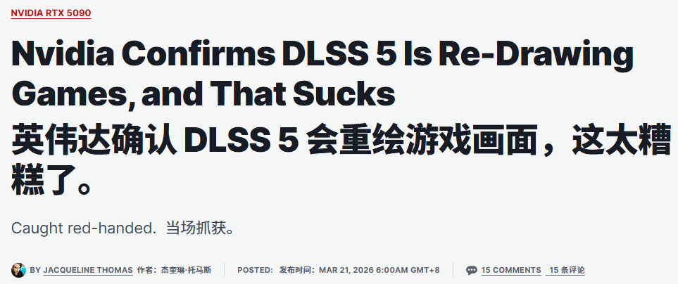 本周GTC大会上,英伟达(NVIDIA)正式公布了DLSS 5技术,这款被其标榜为“图形技术重大突破”的新功能,自亮相以来就深陷争议之中。尽管英伟达CEO黄仁勋多次强硬表态,称质疑这项技术的人“完全错了”,但近日其技术代表的澄清,却意外坐实了玩家们最担心的问题——DLSS 5的核心运作方式,本质就是对游戏画面进行“重绘”。
