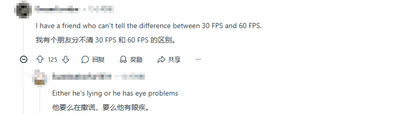 热议中也出现了一段小插曲,有玩家提及,自己身边有朋友甚至分辨不出30FPS与60FPS的画面区别。这条评论很快引发其他网友讨论,有人直言难以理解,认为这类玩家要么没有说实话,要么是视力存在问题,毕竟《红色沙漠》在PSSR2加持下,画面流畅度与清晰度的提升十分直观,即便是普通玩家也能明显感受到差异。
