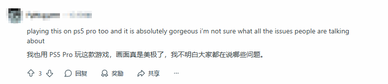 与此同时,大量实际使用PS5 Pro体验游戏的玩家,纷纷站出来力挺《红色沙漠》的画质。他们表示,亲自上手后发现,主机端的画面效果格外出色,细节饱满、色彩细腻,完全不理解网上流传的关于游戏画面的负面评价,甚至有玩家称,PSSR2让《红色沙漠》的画面质感直逼PC端高配置表现,沉浸式体验直接翻倍。