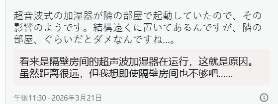 经过一番排查,这位玩家终于找到问题的根源:原来是隔壁房间一直在运行的超声波加湿器在“搞鬼”。即便两个房间有一定距离,加湿器产生的雾气依然会扩散到主机所在的区域,雾气消散后,就会在机身上留下那些白色粉末。