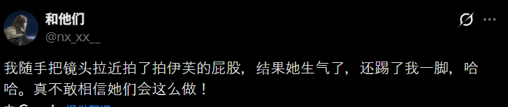 尽管这类彩蛋并非首次出现,但依然让不少玩家觉得新鲜有趣。近日就有一位日本玩家分享了自己的亲身经历,配文吐槽道:“只是随手放大看了下伊芙的背影,结果不仅被瞪了,还被一脚踢飞,没想到还有这种惊喜演出。”