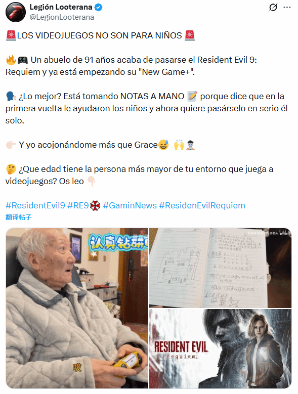 B站知名UP主@骨灰级游戏玩家_杨老头(本名杨炳林),凭借通关《生化危机9:安魂曲》并开启二周目的事迹,不仅在国内引发热议,更成功走红海外,吸引了大批国外《生化危机》粉丝的关注与称赞。