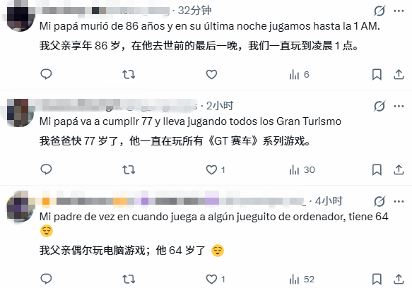 杨老头的事迹传开后,网友们纷纷留言表达敬意,相关评论区俨然变成了一场“老年玩家大聚会”。有44岁的玩家调侃自己在他面前“还很年轻”,也有40岁的玩家笑称自己是“圈内最老”,更有网友分享了暖心往事——自己86岁的父亲在临终前夜,还和他一起玩游戏到凌晨1点。