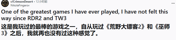 《红色沙漠》上线以来评价两极分化,不少玩家因褒贬不一的口碑,始终在入手与否之间徘徊。就在这时,一位国外玩家在reddit社区分享了自己的亲身游玩感受,直言这款游戏是自己玩过的最出色作品之一,上一次有这般惊艳的体验,还是在玩《荒野大镖客2:救赎》和《巫师3》的时候。