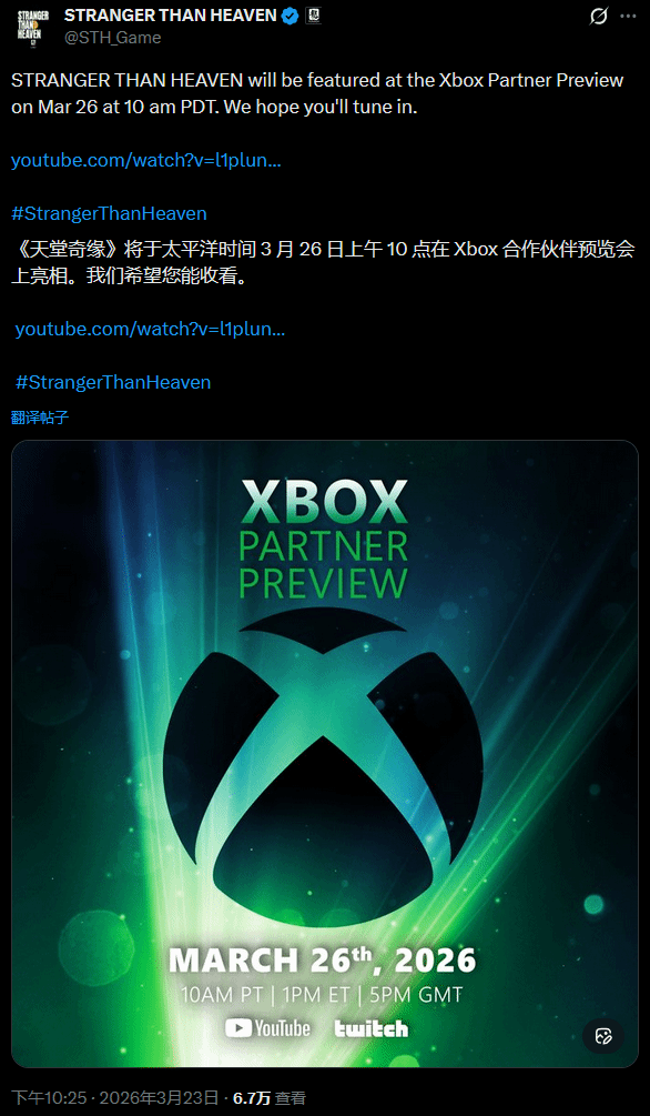 更令人兴奋的是,就在北京时间3月27日凌晨1点,这款游戏确认将在Xbox合作伙伴预览会(Xbox Partner Preview)上登场。届时,开发团队很可能会公开更多关于核心玩法、剧情走向以及世界观设定的详细信息。对于一直关注如龙组动向的玩家来说,这场发布会绝对不容错过,让我们静候周四凌晨的重磅消息。