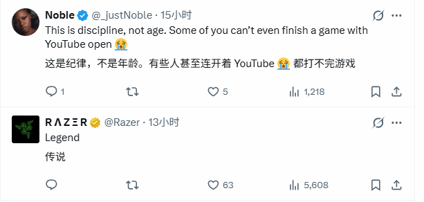 国外玩家看到相关报道后,纷纷表达了对杨炳林老爷子的敬佩,不少人留言表示,十分羡慕老爷子的状态,也希望自己能像他一样,一直保持对游戏的热爱,玩到老、乐到老。除了普通玩家,雷蛇等知名品牌官方账号也特意留言,为这位91岁的老玩家点赞,赞叹他的坚持与热爱。