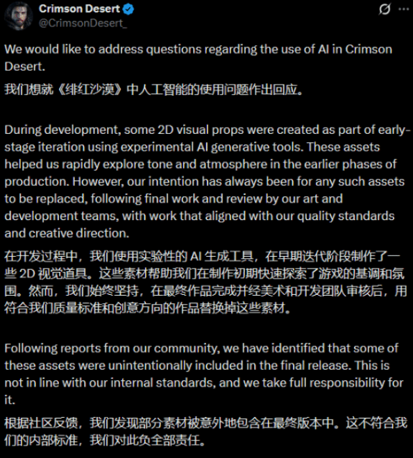 事实上,Steam平台目前仅对开发者提出了“主动披露生成式AI使用情况”的要求,并未针对“事后补标”这类信息不透明的情况,制定专门的退款保障政策。此次《红色沙漠》的退款争议,也将行业内的这一灰色地带彻底暴露:当开发商未能履行事先告知义务、事后才补充声明时,玩家的知情权与合理退款诉求,该如何得到有效保障,成为亟待解决的问题。