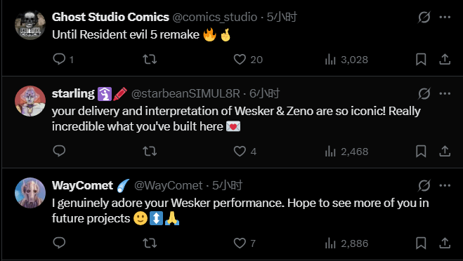 玩家们在评论区纷纷表达期待,有人盛赞克雷格·伯纳托夫斯基的配音功底,直言希望他能在未来的作品中,继续为威斯克这一经典反派角色配音;也有玩家大胆猜测,《生化危机5:重制版》或是《生化危机:代号维罗妮卡》重制版,或许已经进入筹备阶段。值得一提的是,知名爆料人Dusk Golem此前就曾透露,《代号维罗妮卡》重制版中,会为威斯克增加额外戏份,种种线索叠加,让不少玩家坚信,这位系列经典反派的回归,只是时间问题。