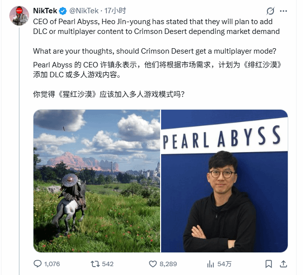 早在《红色沙漠》正式发售前,开发商Pearl Abyss在一场财务电话会议的问答环节中,就已透露了后续的发展规划。
