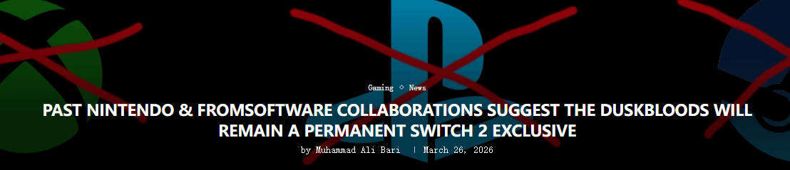 外媒twistedvoxel给出重磅推测,FromSoftware(简称FS社)旗下全新动作角色扮演游戏《The Duskbloods》,有望长期锁定Switch 2平台,不会登陆其他游戏主机或PC平台,成为该机型的永久独占作品。这一推测,主要基于FS社与任天堂长期稳固的合作过往,以及双方在这款新作开发中的深度绑定。