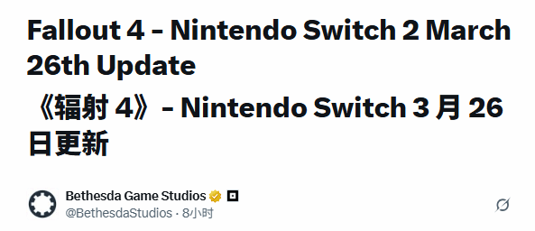 Bethesda工作室近日为NS2版《辐射4》推送重磅更新,核心亮点为新增英伟达DLSS技术支持。