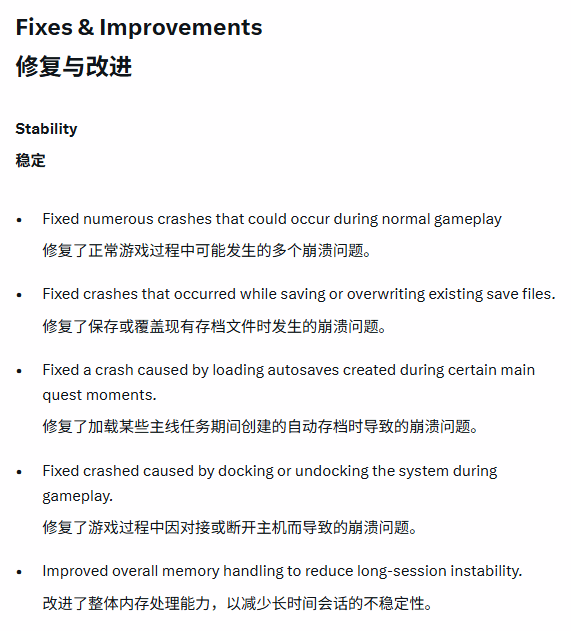 此次更新除DLSS支持外,还修复了游戏稳定性、视觉瑕疵、本地化翻译及HUD界面等多项问题,优化玩家体验。
