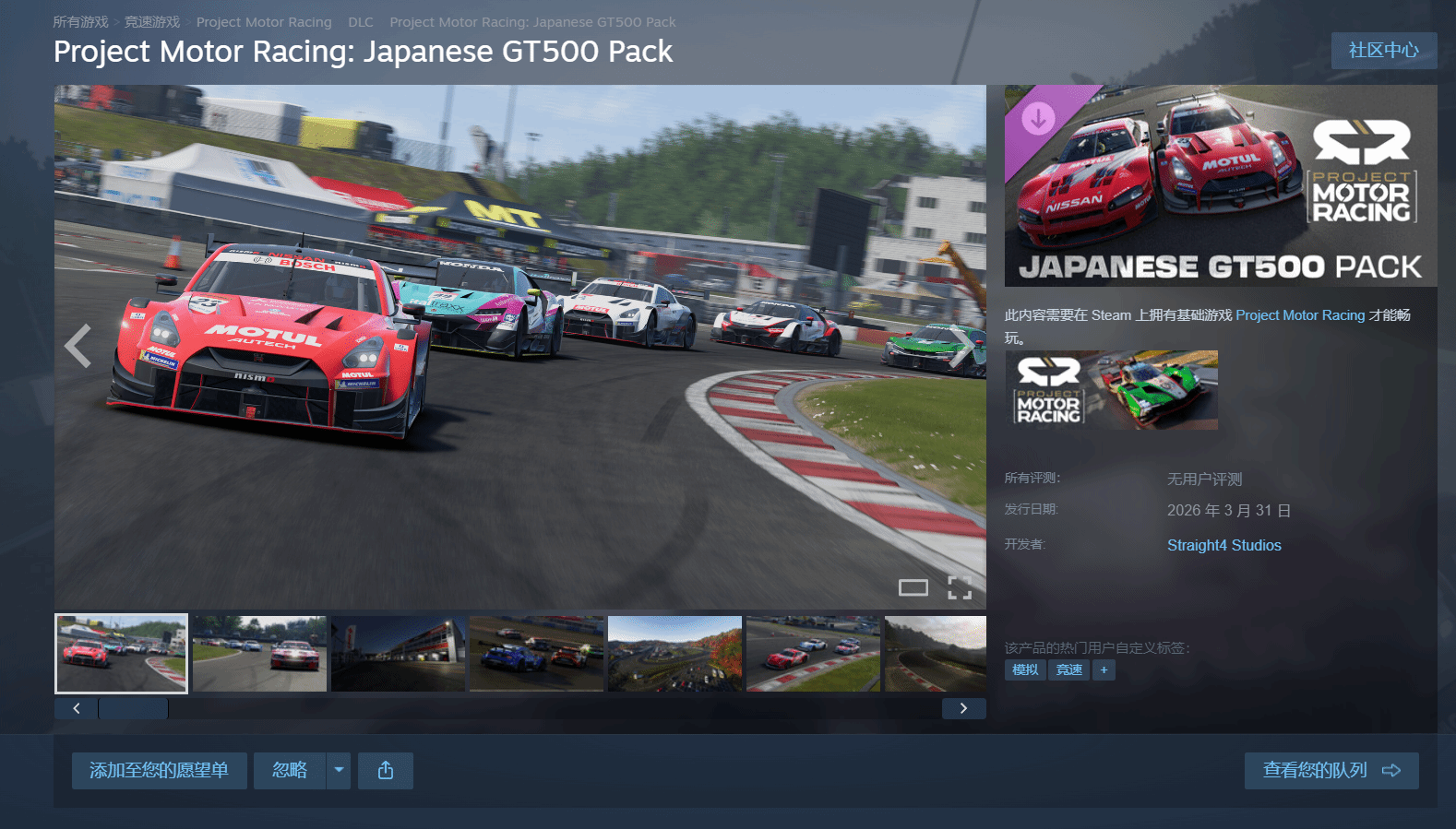 除了免费试玩活动,官方还推出了诚意满满的促销活动吸引新老玩家:4月8日之前,游戏本体将开启50%的半价优惠,其中国区折后价为124元。与此同时,官方也正式确认,以日本赛车文化为核心主题的全新DLC“日本GT500赛车包”,将于3月31日同步推出,为玩家带来更多全新游戏体验。