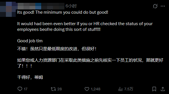 在Tim Sweeney这条回应推文的评论区,舆论呈现两极分化。有部分网友对他后续的补救措施表示认可,但更多声音则对其提出严厉批评,认为此次大规模裁员本就可以避免,不该让身患重病的员工陷入如此困境。